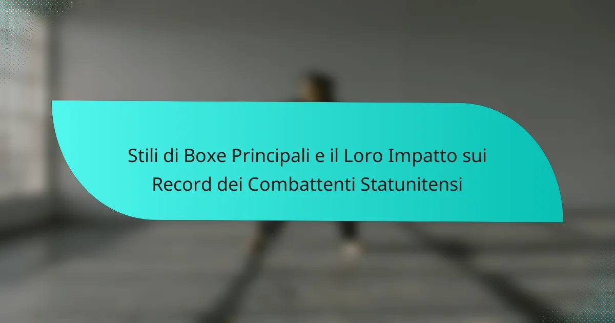 I principali stili di boxe includono ortodosso, mancino e switch-hitter, ciascuno caratterizzato da posizioni e tecniche uniche. Comprendere questi stili è cruciale per analizzare le prestazioni e la strategia dei pugili sul ring.